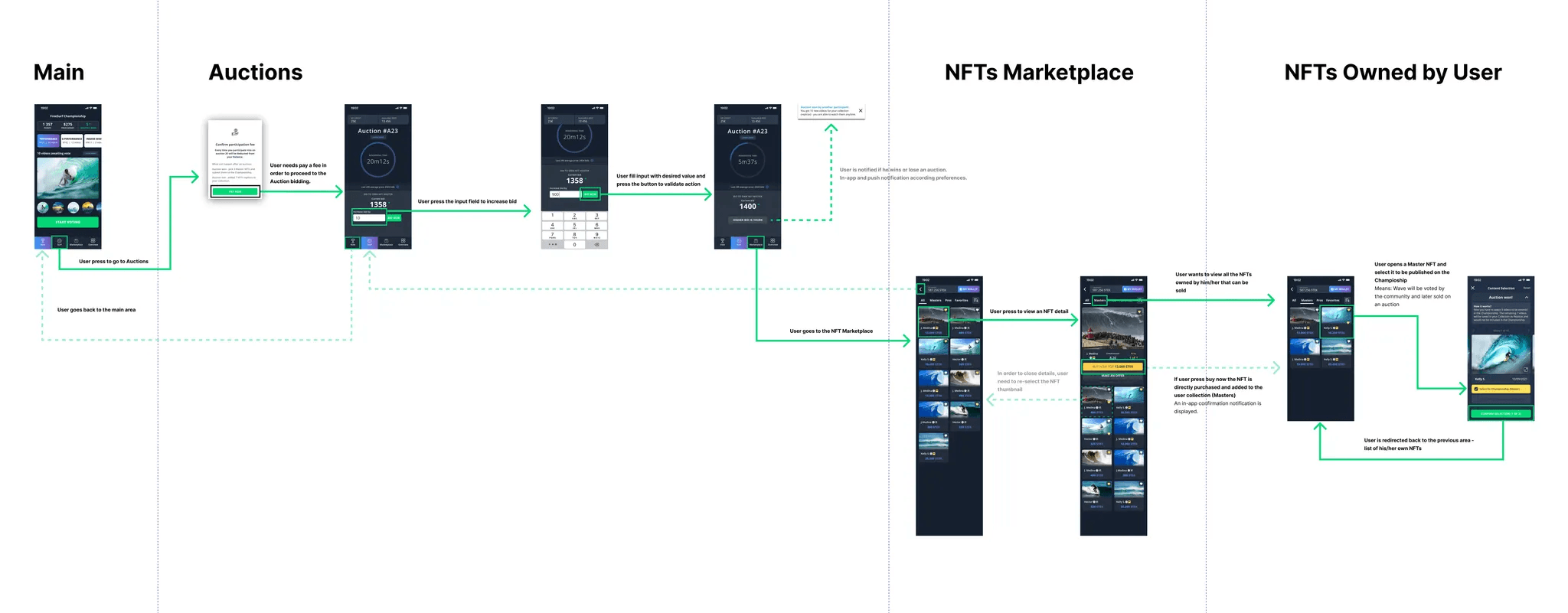 Whoever manages to buy Waves can put them up for sale in the application's dedicated NFT Marketplace and all surfers receive a percentage of the values transferred, achieving an extra income.