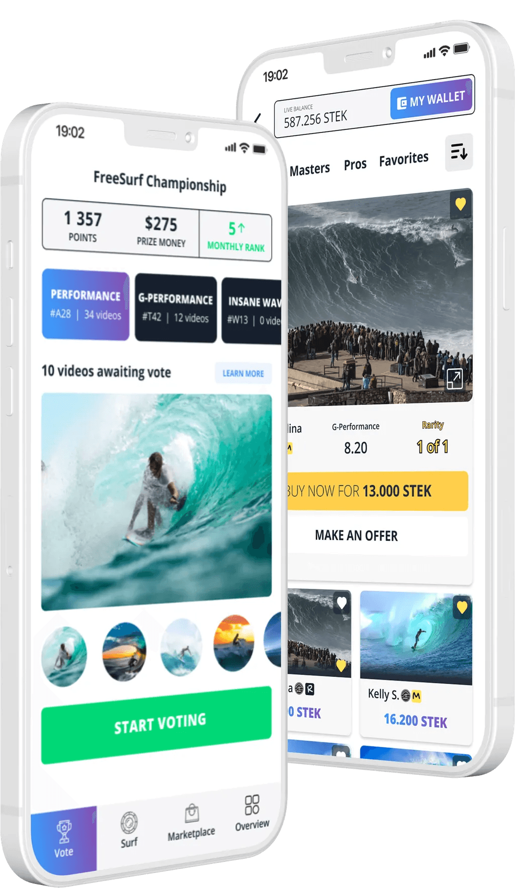 This business model transforms that, creating a disruptive system where surfers can import videos of their waves and create an NFT that will be sold in the application in an auction model - whoever buys doesn't know which waves are going to come in, some are unique or not.